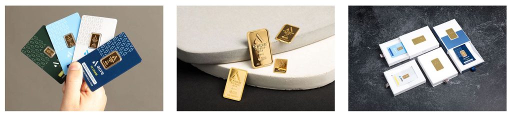 Each bar contains pure gold (99.99%) and arrives in protective packaging with authentication of its weight and purity.