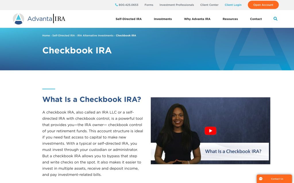 Advanta IRA provides client account access through their online platform. You receive checkbook control features that allow direct access to your retirement funds.