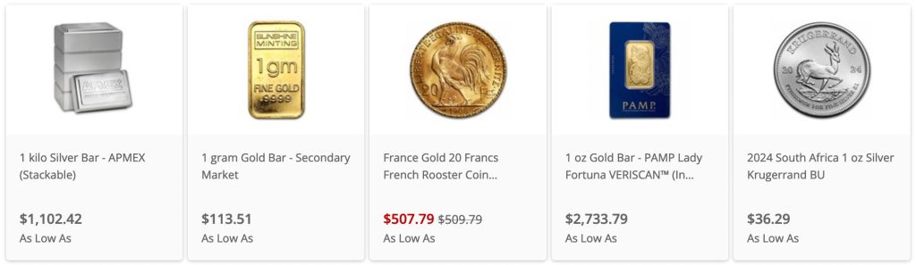APMEX provides various products that cater to precious metal buyers, whether for investment purposes or collecting unique items. Let’s explore the main products available at APMEX.