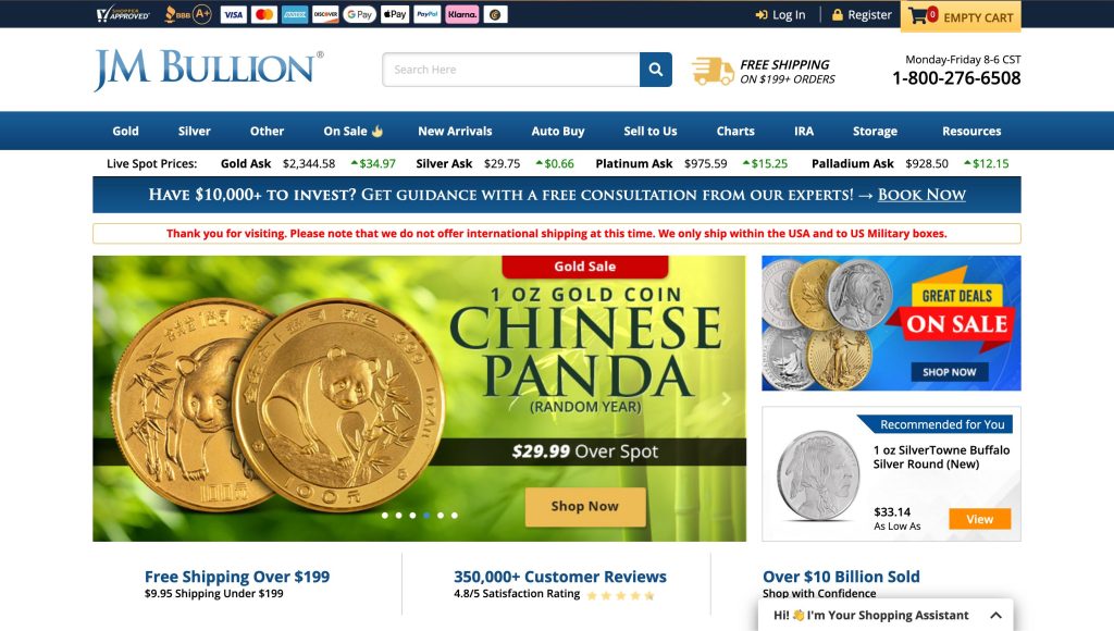 • Highly rated precious metals dealer with generally positive customer reviews. Most customers are satisfied with their purchases from JM Bullion.