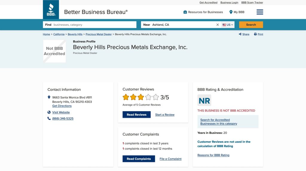 Beverly Hills Precious Metals shows mixed customer feedback across platforms.