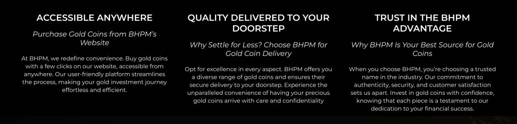 - Quality Delivered to Your Doorstep: BHPM delivers high-quality gold coins directly to customers with proper safety measures. These deliveries make investment very easy by giving secure and private shipping options which help to protect your valuable items.