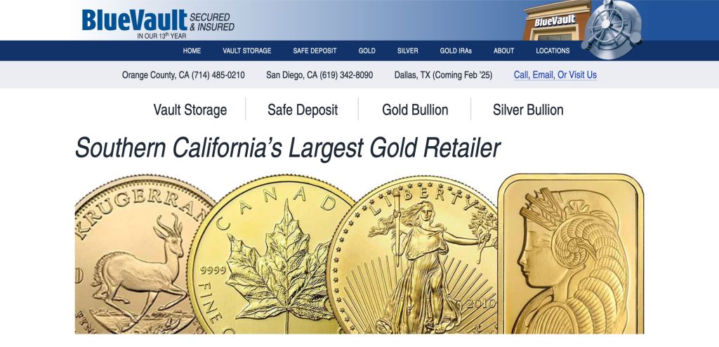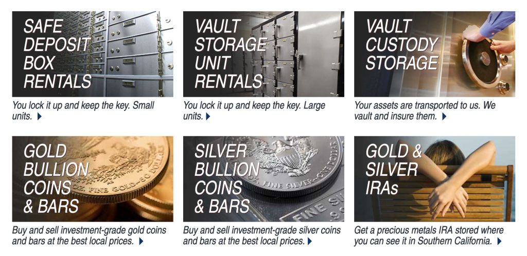 - Orange County, CA: Complete suite of services including safe deposit boxes, vault storage, bullion sales, and IRAs.