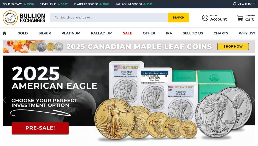 Bullion Exchanges stands as a reputable dealer for your precious metal investments, including gold, silver, and platinum.