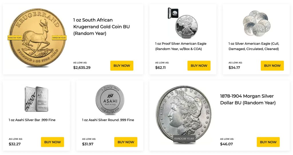Their user-friendly platform presents a comprehensive selection of gold, silver, platinum, and palladium products, organized systematically for easy navigation.
