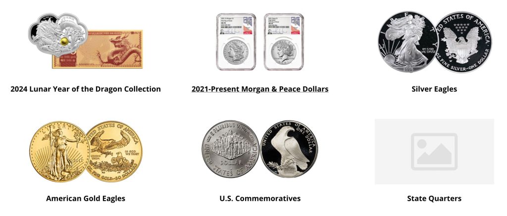 Notable examples include the 2024 Lunar Year of the Dragon Collection, alongside American Gold Eagles and Silver Eagles series.