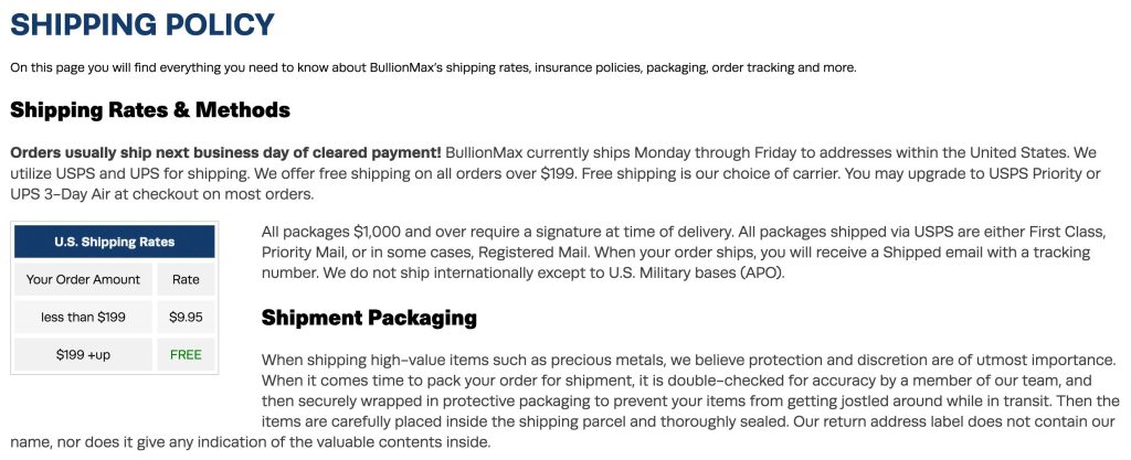 Should shipping complications arise, customers must contact BullionMax promptly to initiate claims procedures.