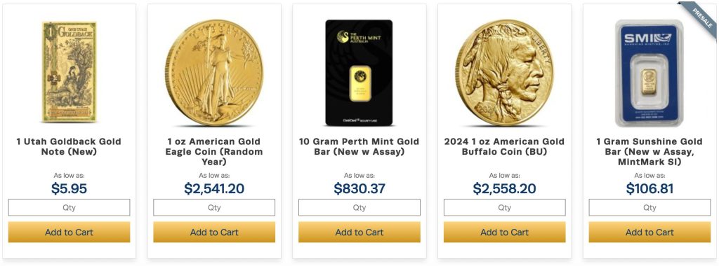 BullionMax supports investing in a variety of gold items like bars, coins, and rounds, all of which must meet the IRS’s purity guidelines.