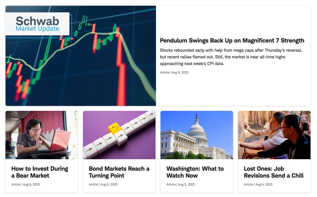 • Institutional-Grade Research Tools: Morningstar, Argus, and CFRA reports provide independent analysis on 8,000+ securities. Schwab Coaching delivers live webcasts with market experts weekly. The Knowledge Center contains 500+ educational videos and interactive courses.