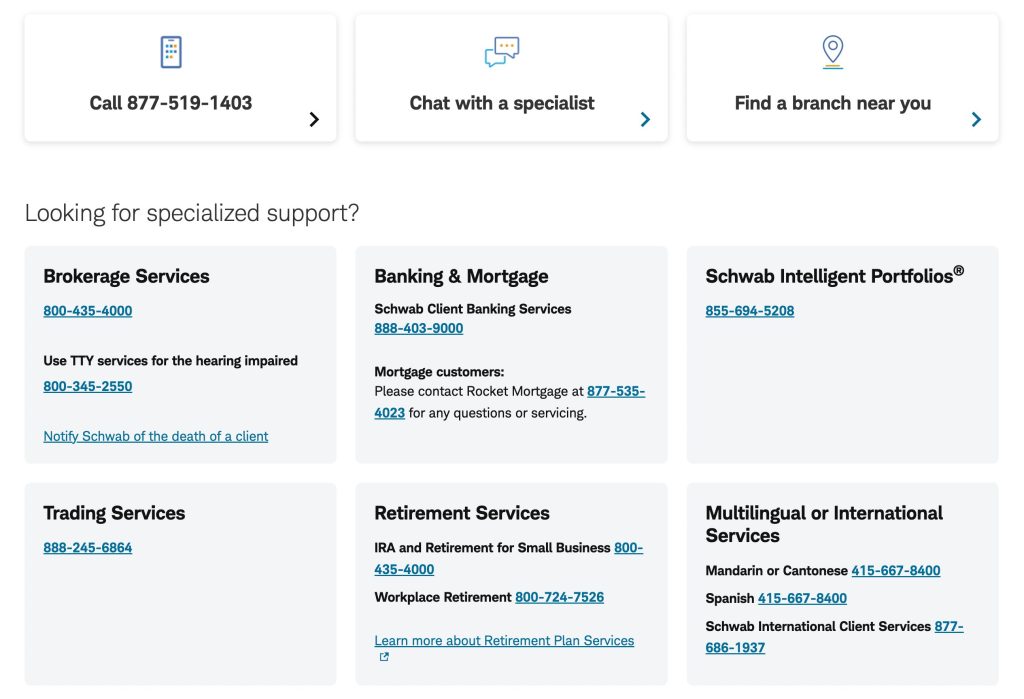 Schwab’s customer-centric approach includes 24/7 phone support, 300+ physical branches for face-to-face consultations, and integrated banking services with unlimited ATM fee rebates worldwide.