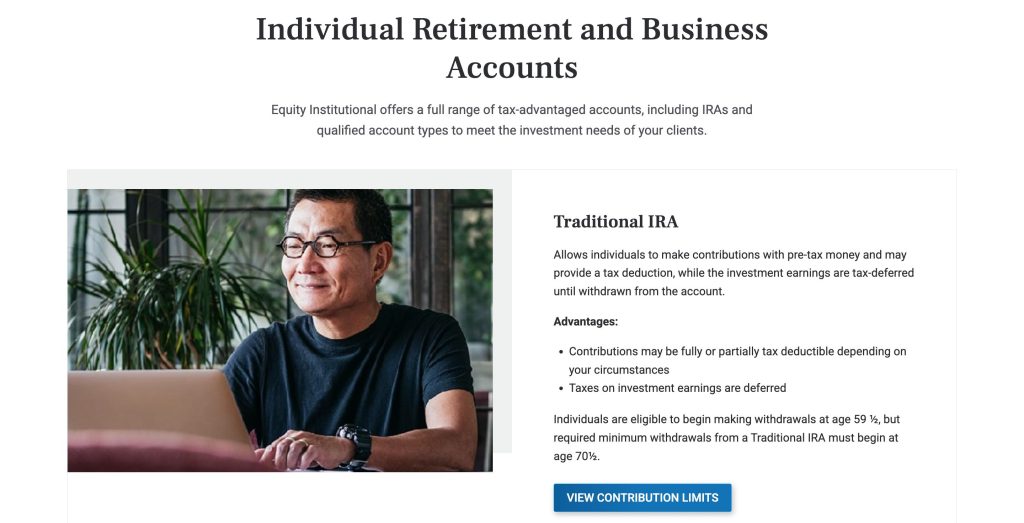 Equity Advisor Solutions provides tools and support for financial advisors and broker-dealers working with self-directed accounts. The platform includes compliance resources, client education materials, and streamlined account opening processes.