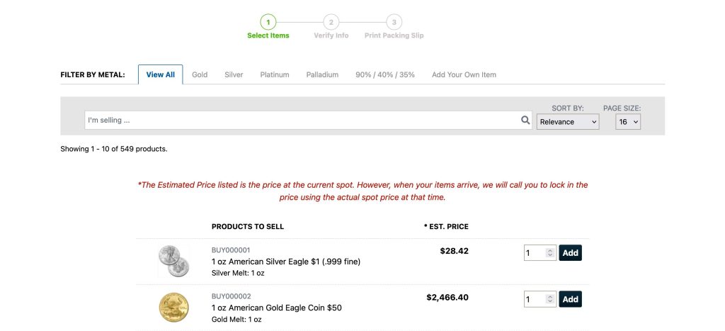 - Visit their website to review current buying prices for your items. Remember prices fluctuate until sale confirmation.