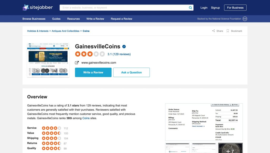 These mixed reviews emphasize the importance of careful consideration before choosing Gainesville Coins as your precious metals dealer, as customer experiences seem to vary significantly.