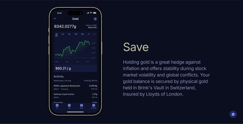 Through their Mastercard integration, customers access gold-based purchasing power at various merchants worldwide.