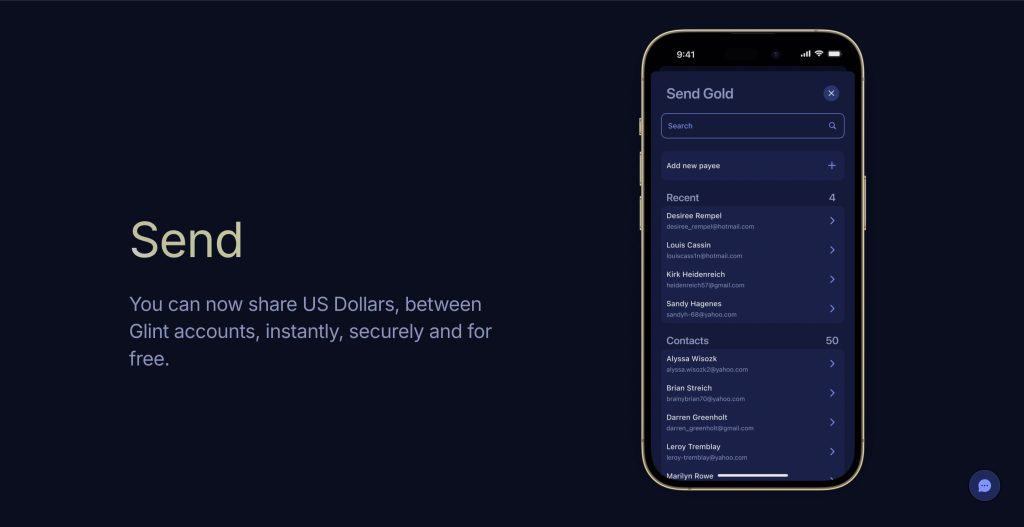 A standout feature of Glint lies in its efficient peer-to-peer transfer capabilities within the Glint network. While direct gold transfers aren’t available, users can instantly transfer US dollars without additional charges.