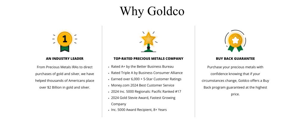 Goldco is a national leader in retirement planning and gold IRA rollovers. It is a precious metals IRA company that allows buyers to hold gold, silver, and other precious metals in their retirement accounts.