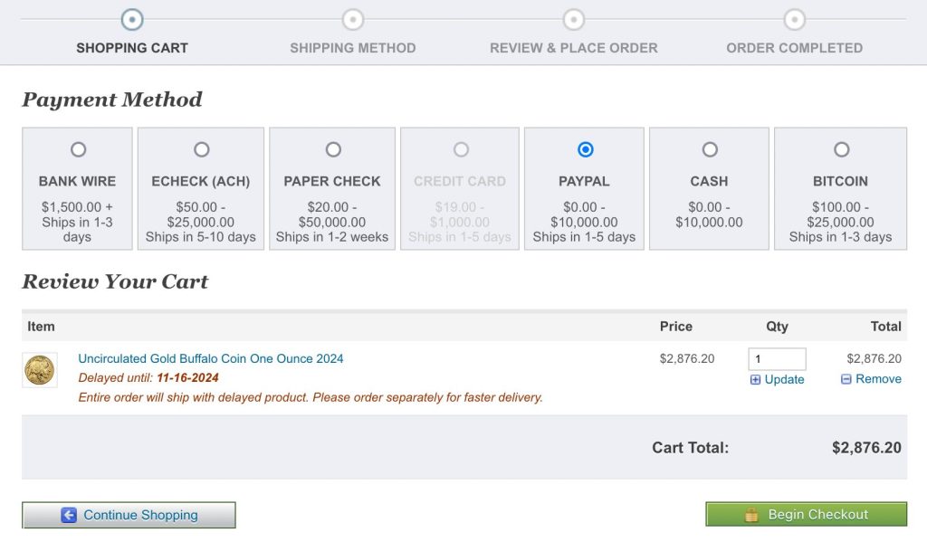 Golden Eagle Coins provides straightforward and convenient payment solutions, offering multiple methods to accommodate your preferences.