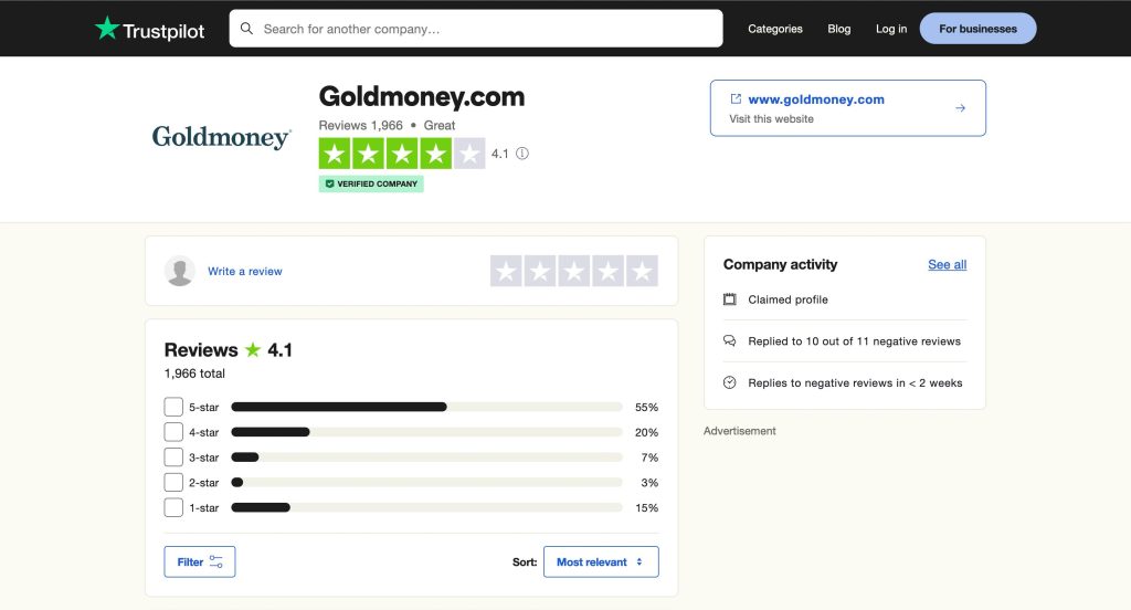 User feedback for Goldmoney varies across multiple review platforms.
