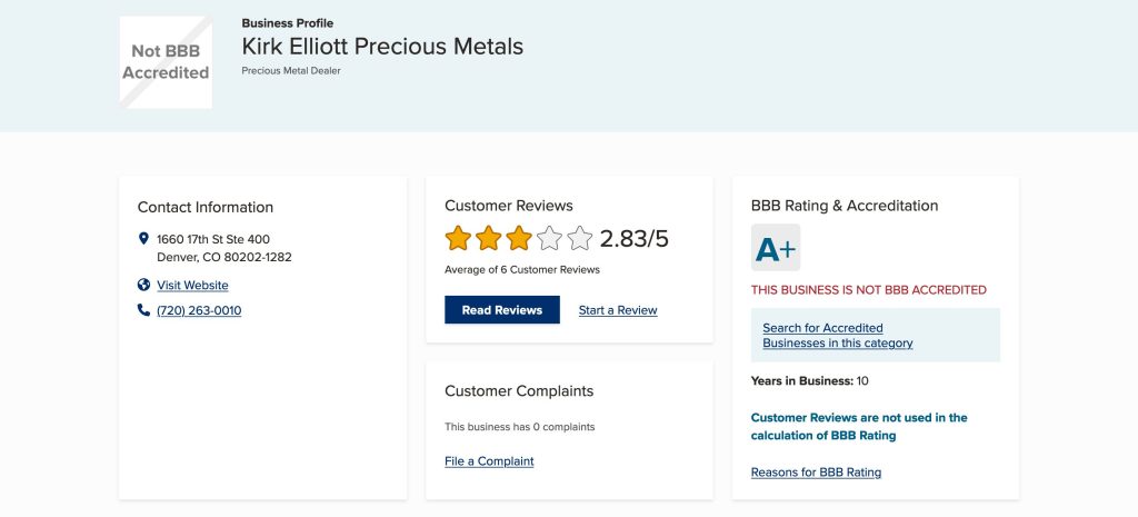 Kirk Elliott Precious Metals has garnered mixed reviews, with an average rating of 2.57/5 on BBB. The positive reviews commend the company’s professionalism, credibility, and service quality.