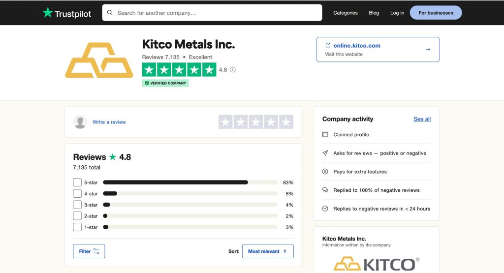 Kitco’s online presence shows varying customer feedback across platforms.