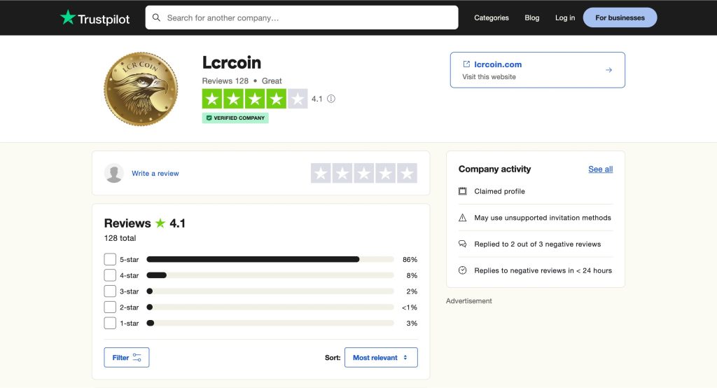 The substantial positive ratings on major review platforms suggest overall customer satisfaction with LCR Coin services.