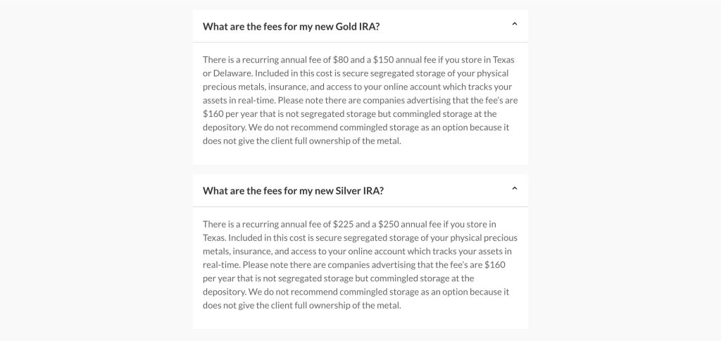 - Storage: $150 per year for keeping your metals separate – This makes sure your metals are stored safely and apart from others.