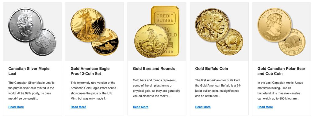 Upon deciding to move forward, their team guides you through account establishment and investment selection, featuring options like premium gold or silver coins.