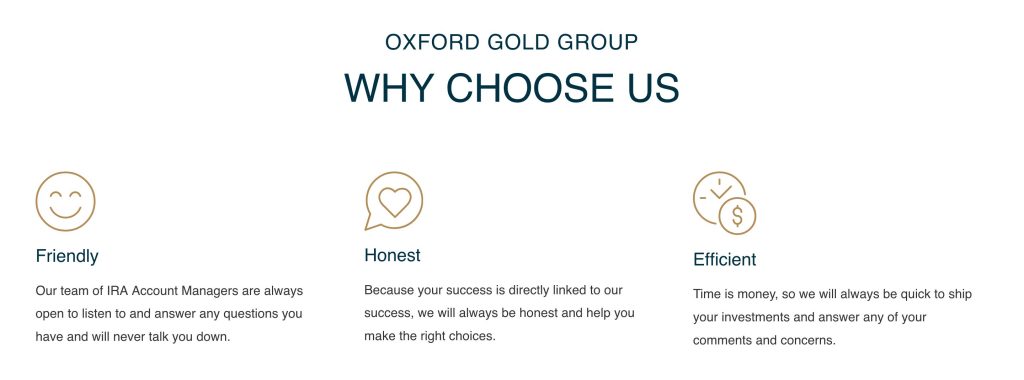 • Storage and Management: To follow IRS rules, Oxford Gold Group worked with other companies to provide secure storage for clients’ precious metals. They also helped manage the IRA, including doing required paperwork, yearly reports, and helping with buying or selling within the account.