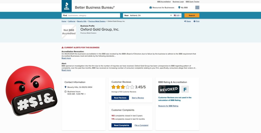 The BBB put out a public warning telling consumers about the risks of doing business with Oxford Gold Group. This warning probably played a big part in further damaging the company’s reputation and credibility in the market.