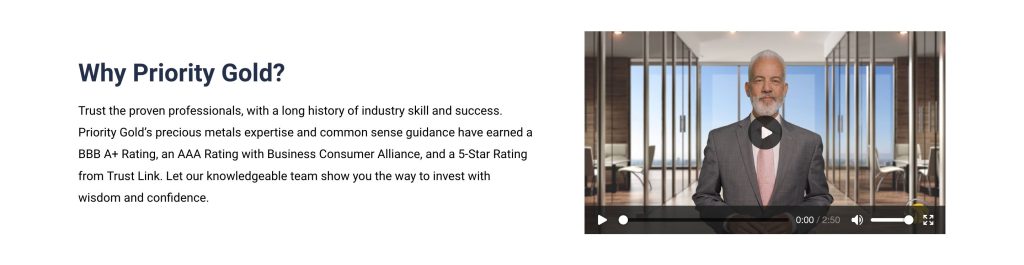 Priority Gold strives to become America’s most reliable precious metals investment partner. They emphasize transparent pricing, safe storage solutions, and superior customer support.