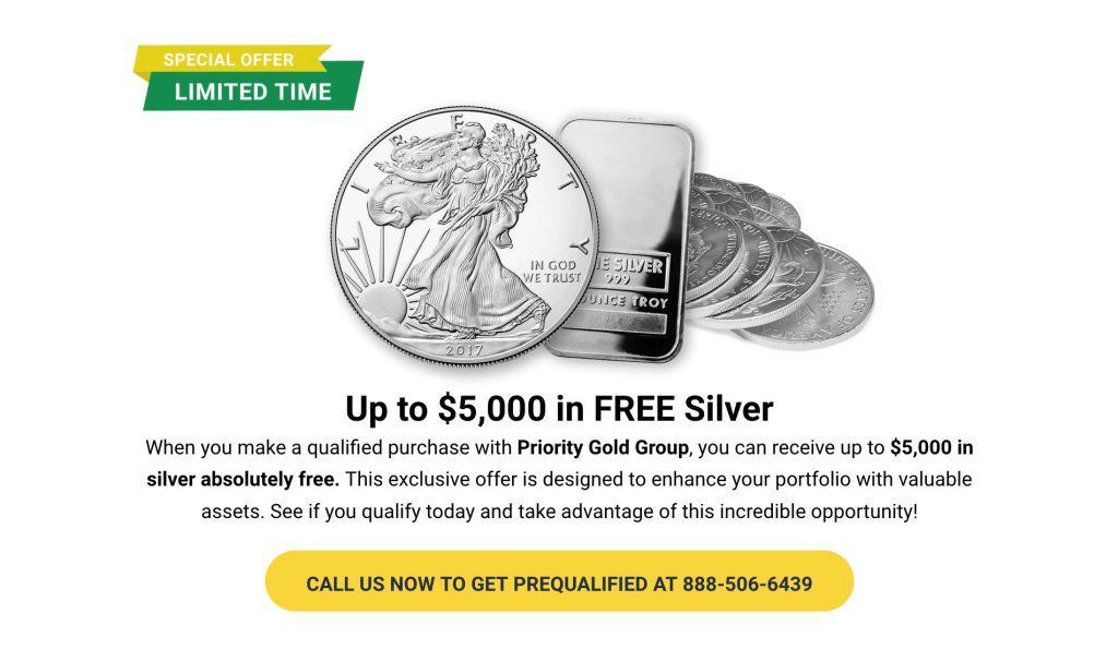 Priority Gold Group offers customers an opportunity to receive up to $5,000 in free silver with qualifying purchases.