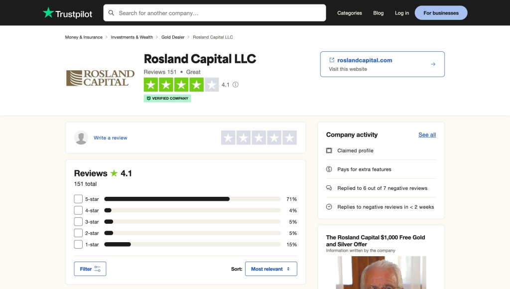 Many customers have expressed satisfaction with Rosland Capital’s services, particularly noting their professional approach and helpful guidance.