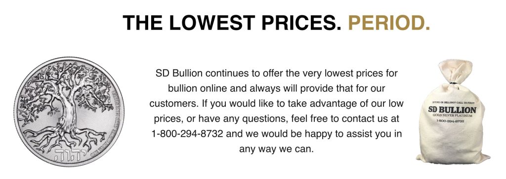 SD Bullion is known in the competitive precious metals market for offering the lowest prices since 2012 and for its robust and customer-friendly shipping process.