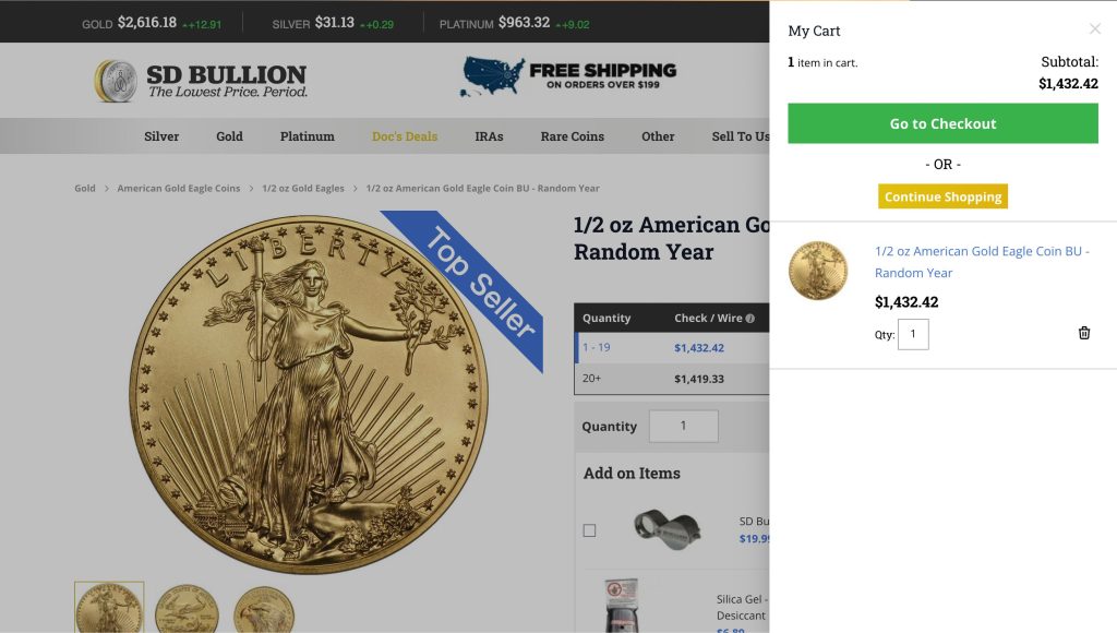 • Competitive Prices: SD Bullion offers prices that are in tune with the current market, ensuring you always get a good deal. They keep their prices low by buying in bulk and running efficiently.